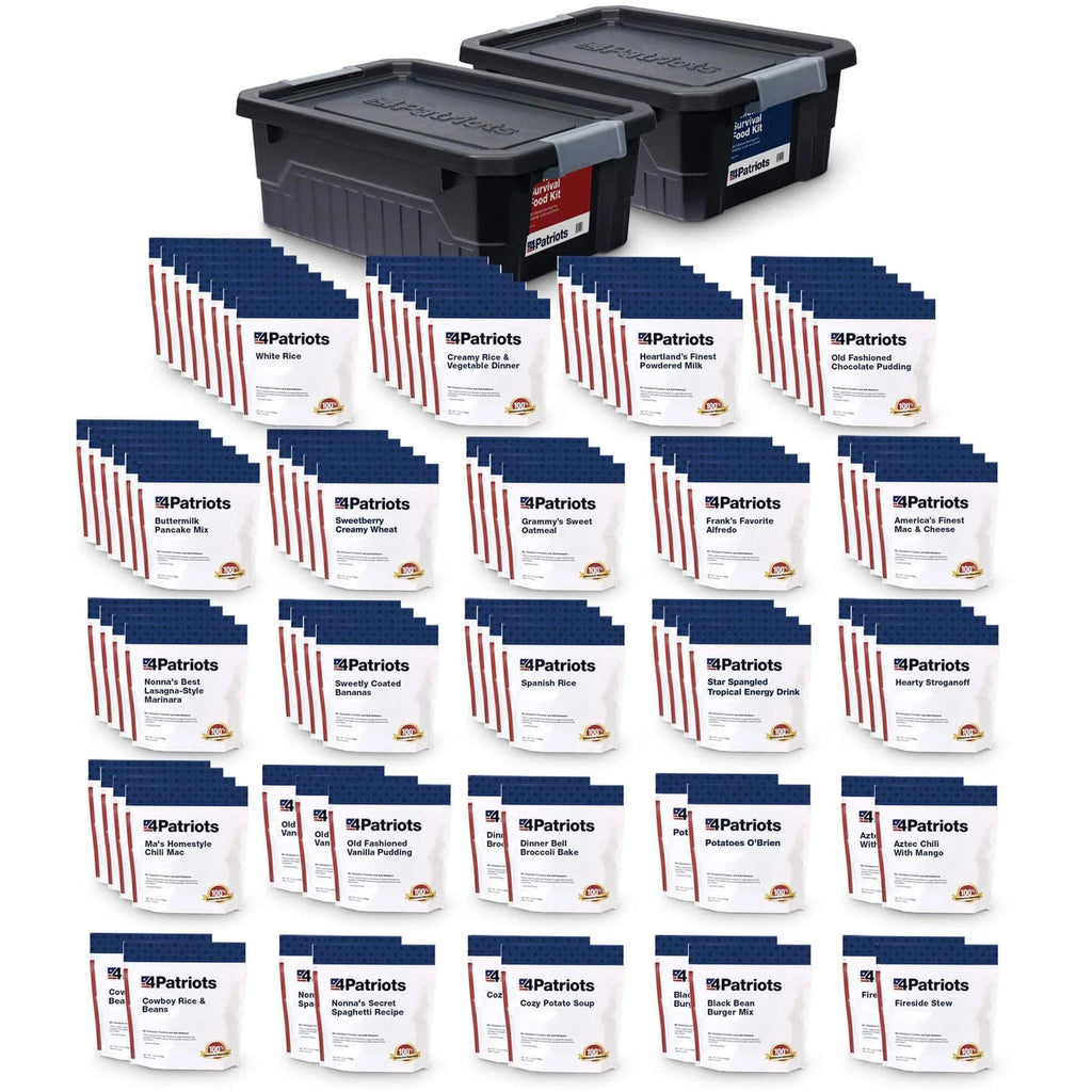 The 3-Month Survival Food Kit gives you 688 servings of delicious emergency food to add to your prepper supplies. This freeze-dried food is designed with a 25 year shelf life (longer than MREs). You get "stick-to-your-ribs" emergency food for breakfast, lunch, and dinner. Not to mention, mouthwatering desserts to stockpile in your survival food supply. Plus, real milk and energy drinks to wash it all down. Each 3-Month Survival Food Supply gives you: 688 servings – (7.6/day average) It's the perfect long-term emergency food supply for Americans. And a great stash for your prepper supplies. The secret is our incredible 25 year shelf life. Our freeze-dried food uses an advanced sealing process to give your prepper food an amazing 25 year shelf life. It’s why we recommend this survival food over MREs. And now, you get a 3 month supply of tasty survival food shipped straight to your door. + 4Patriots Calorie Disclosure We hand pack every Survival Food Kit — right here in the USA — so it’s perfect for you. And we make every effort to supply the exact meals represented here. Recipe substitutions — while rare — may happen occasionally due to fluctuations in the supply of high-quality raw ingredients. If one of the meals in your kit is substituted, it will always be of equal or greater value. |