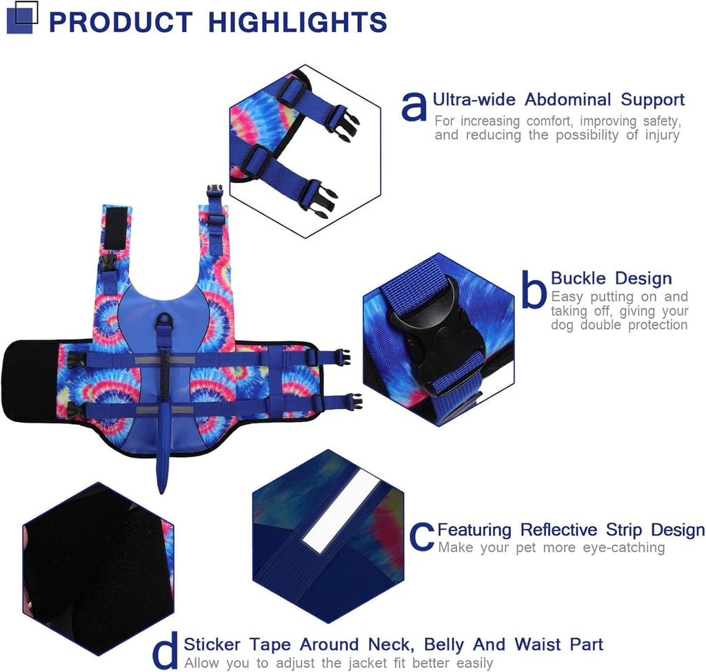 - PRACTICAL DESIGN - Adjust belt with the quick-release buckles makes the dog life vest saver becomes easier to put on / off, you can also adjust the belt to fit your pet perfectly. Furthermore, the heavy-duty D-ring hook is perfect for dog leash to prevent your dog from running around.