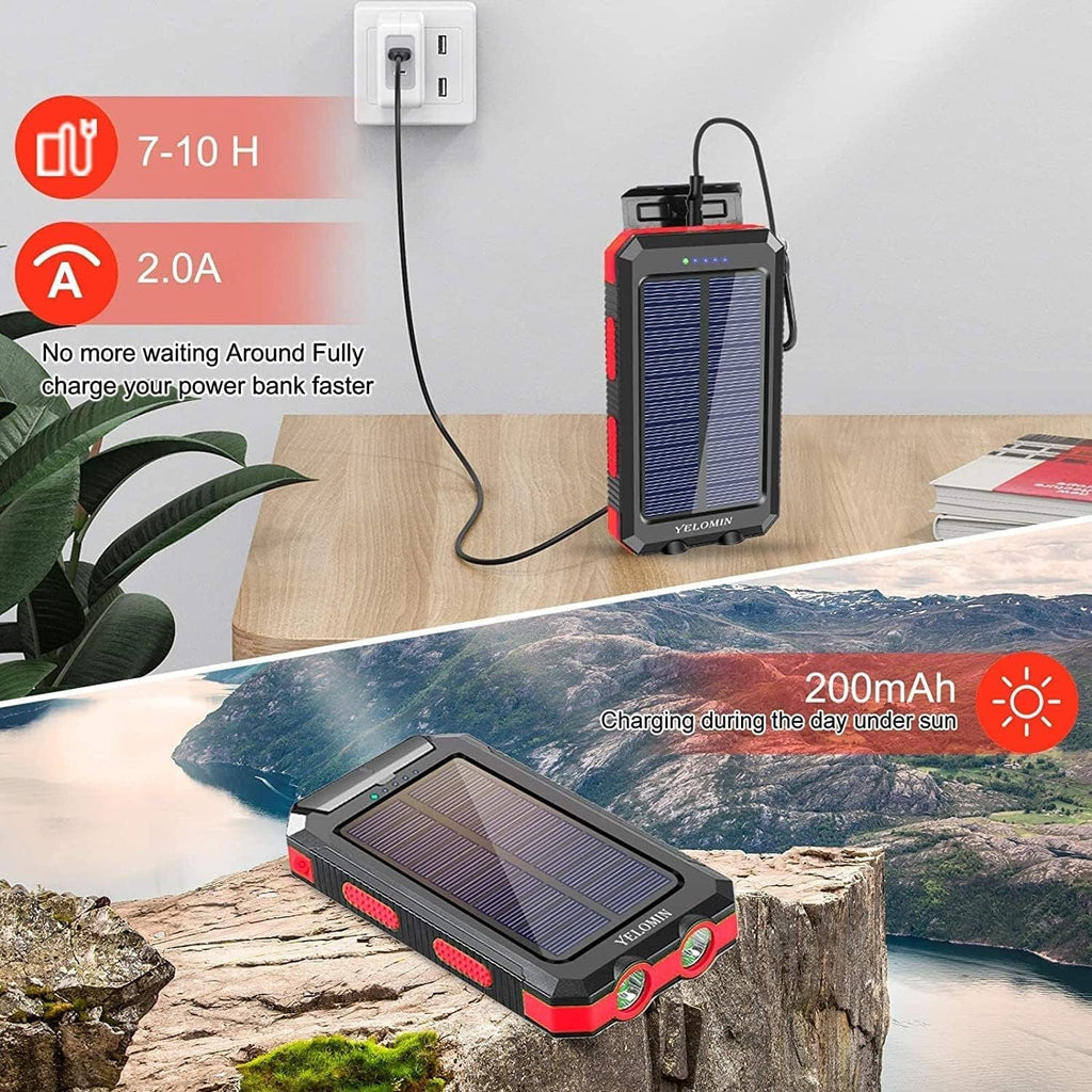 - 【Two Different Charging Methods 】: External battery charger with solar panel can recharge by sunlight or outlet. It's highly recommended to charge it via a wall outlet in daily life and take the solar charging feature as the emergency backup solution. The USB cable in the package is only used to charge the solar charger. It is not recommended to charge other devices, which may slow down the charging efficiency due to incompatibility