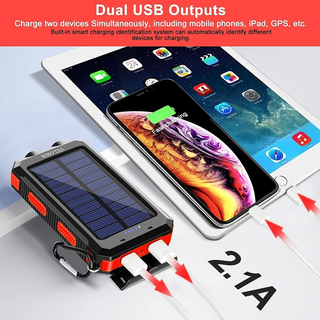 - 【3 Ports Highly Compatible with Multiple Devices 】: The solar-powered charger is not only ready to charge the USB powered devices including your iPhone, HTC, Go-pro Camera, Tablets and other USB electronic devices but also a portable charger can be recharged by cables (Micro) and not suitable for mobile phones with USB C. Built-in 5V/ 2.4A USB Outputs, make it easy to charge two smartphones simultaneously or a tablet at full speed