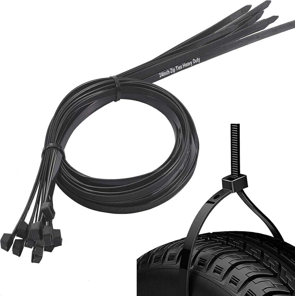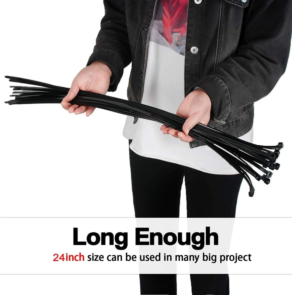 24 Inch Zip Ties Black With 175 Pounds Tensile Strength for Multi-Purpose Use